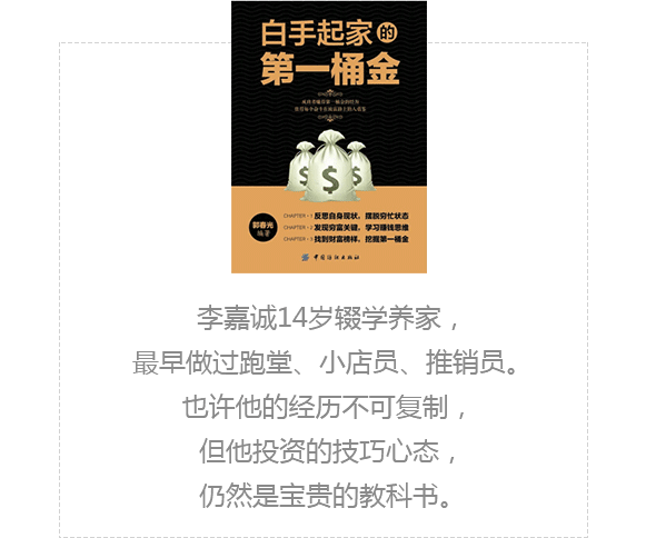 1958年,香港本土有几百家塑胶企业,长江哪里有什么独到的竞争优势?可是李嘉诚照样在资金不足的情况下赢得主动权。眼光和机遇都很重要。